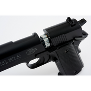 The Colt 1911 ranks as one of the most successful military pistol designs ever developed. The timeless design, weight, and feel of the 1911 is incorporated into this Colt Government® 1911 A1 CO2 air pistol The Colt Government runs from an 8-shot rotary magazine. The gun shoots .177 caliber pellets at 425 fps. The sights are adjustable, and the controls work like the originals. Licensed Trademarks of Colt's Manufacturing Company LLC.