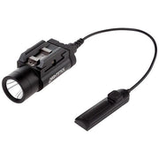 The TWM-854XL Tactical Weapon-Mounted Long Gun Light with Remote Pressure Switch uses an LED rated 850 lumens. Working in conjunction with a high-efficiency deep parabolic reflector it creates a usable beam of light rated at 245 meters. This weapon light attaches to a Picatinny Rail of a long gun to operate the momentary-on or constant-on lighting modes. The housing is constructed from aircraft-grade 6061-T6 aluminum. Package includes light with remote pressure switch installed with pressure pad (8" cable), rail connector, wire management clamp, alcohol pad, 2 adhesive-backed hook and loop mounting strips, 1 set of spare cross-rail inserts and cross-rail mounting screws, Allen Wrench, and 2 CR123 batteries. (Not compatible with rechargeable batteries.)
