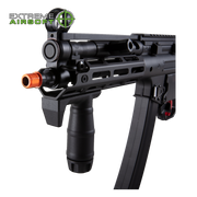High speed and low drag- Limited Edition Elite Force HK MP5 is legit first-class AEG performance. All metal upper and lower with the A4 style stock is complete with a full metal reinforced gearbox and ready to accept your favorite 9.6v stick style battery. Topping the list of features from here is the claw mount Picatinny optics rail followed closely by the oversized ambidextrous charging handle matched in form and function by the enhanced ergonomic charging handle. A red metal trigger blade catches the eye well, and feels great to the trigger finger. This MP5 accepts Elite Force MP5 magazines and other common MP5 upgrades. This MP5 is an officially licensed Heckler & Koch replica available exclusively through agreement with Elite Force Airsoft. Umarex holds the worldwide exclusive HK-Trademark and exterior design copy license for use with this product, granted by Heckler & Koch GmBH.