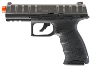 DetailsThe Beretta APX semi-automatic blowback BB pistol is yet another ultra realistic replica from Umarex USA. Originally designed as a replacement for the Beretta M9, U.S. Armed Forces standard issue, but deemed too expensive for the DOD, Beretta withdrew the APX and opted to modify the M9. As a result, the civilian world benefited by being able to purchase a mil-spec pistol that was "too mil-spec" for the military. Umarex's APX is built with a polymer frame and metal slide and has a true double action trigger. Accessories can easily mount to the front Picatinny rail, giving the user a real-world training tool or backyard plinker.Features: