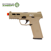 This gun is well balanced and easy to operate, the grip is at a straighter angle, which makes it more comfortable and easier to shoot, with changeable textured grip straps really make this pistol a solid fit for just about every shooter. The pistol breaks down like many other popular pistol models with a simple takedown lever that sits forward of the trigger guard, maintaining this pistol is a breeze. If you're looking for an affordable gas powered sidearm, the ICS XAE is a very solid option for the money.
