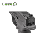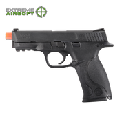 With full blowback slide action this Smith & Wesson M&P 9 airsoft pistol is powered by green gas such as Elite Force Fuel. This single action pistol comes with a 23-round airsoft magazine and shoots at 310 fps. This airsoft handgun is VFC made for Umarex and Elite Force.