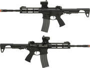 The G&G CM16 Raider L 2.0E AEG - a combat machine airsoft M4 that's new for 2017.  This features a longer barrel and PDW style rear stock assembly.  New design and configuration featuring M-Lok rail system, full metal gearbox, high quality polymer outer body, flip-up removable front and rear iron sights, PDW metal adjustable stock, and more.  The L 2.0E also has a pre-built mosfet unit that is programmable.  The inner barrel is 6.01mm upgraded.