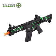- Reinforced redesigned metal version Gen-2 gearbox with ultra-smooth 8mm bearings, 18:1 steel gears, steel teeth polycarbonate piston, reduced heat spikes 16AWG wires, bearing spring guide, rotary hop-up, 25,000 RPM neodymium magnet high-speed motor for consistent performance