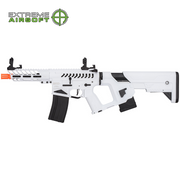 The 6.03 stock tightbore barrel further increases range and FPS, and an injected polymer rotary style hop-up adjusts BB spin effortlessly for maximum precision. Upgraded with an 18:1 reinforced steel gear set to provide a quicker cycling rate and 8mm bushings to enhance the operational smoothness of your gears. These upgraded internals increase shot to shot consistency with minimal wear to your internals. The powerful 25k high torque motor is regulated to maximum efficiency with low resistance copper wiring and a bonus battery protection feature! When low voltage is detected from a drained battery, an automatic cut off keeps equipped batteries from draining completely, vastly increasing battery life and longevity. Replace your springs and alter your FPS without opening up your gearbox! A true quick change spring system enables adjustment from CQB to outdoor and back through unlocking the mechanism secured inside the buffer tube.