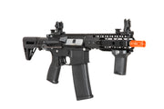 SA-E12 PDW carbine replica is equipped with a free-float handguard in RIS 22 mm mounting system that can serves as a mount for various tactical accessories: flashlights, grips, laser sights and optical sights. The top of the replica features foldable iron sights.