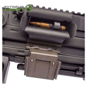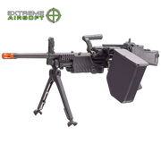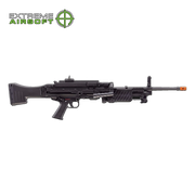 Elite Force Airsoft is bringing extreme duty Heckler & Koch firepower to the AEG line with the HK MG4 "belt fed" airsoft machine gun. This AEG features smart circuitry that will detect the battery type and size you are using as well as over-heat protection. With a 4,000 round detachable box magazine and a 900 round internal hopper (do not fill and use both at the same time) and adjustable hop-up, the MG4 can really send it with mad intensity. The MG4 is equipped with an integral folding bi-pod, side mount Picatinny rails, folding stock with folding wire shoulder support, and folding carry handle. The 4,000 round detachable magazine is powered by the gun's battery and will reliably feed BBs while you have the MG4 deployed. This lightweight, compact machine gun of high airsoft firepower can be carried by one soldier providing full mobility in difficult terrain and in the urban environment.