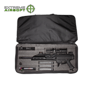 Custom made for the EVO 3 Carbine + B.E.T version, this tactical carry bag is made from Cordura nylon, and features a main compartment with cut-out foam. The foam keeps the EVO tightly in place with extra space for any type of optical sights the user might wish to mount to the gun. The exterior of the bag features 3 mag pockets for a total of 9 magazines, a long pocket that can hold a large BB bottle and 2x zippered admin pocket with Velcro attachment area. The EVO 3 A1 logo is shown in stylish 3 color embroidery.