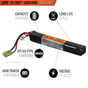 Valken 11.1V LiPo 1200mAh 30C Stick Battery (Mini Tamiya)