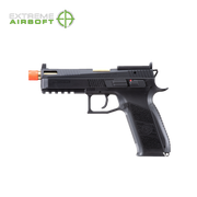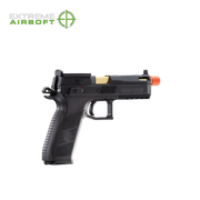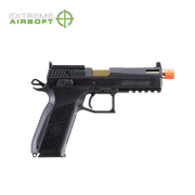 Fans of the original P-09 models will appreciate this updated version of the award winning pistol, which features the additions of an optics plate, lightening cuts in the full metal slide, raised sights, and a 14mm CCW threaded gold-colored barrel. Just like its predecessors, the P-09 OR has the same frame rail and aggressively-textured grip. Manufactured under license from CZ, this 6mm airsoft handgun is designed from the original technical drawings of the P-09 - resulting in a realistic look, accurate ergonomics and smooth handling. Powered by a 12-gram CO2 cartridge in the 25 round magazine, its crisp blowback function makes the metal slide reciprocate cleanly with every shot fired, creating strong recoil and adding to the shooting experience. Each pistol features fully licensed CZ markings and includes a carry case with cut out foam inlay with room for an additional magazine.