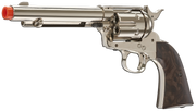 Its overall build quality is unmistakable. The finish, the look of the grips, the fit and feel and its weight are reminiscent of the original single action six shooter of 1872. While this one slings six millimeter airsoft BBs instead of lead, the Legends Smoke Wagon is an authentic six shooter right down to its individual ejecting metal shells.The iconic persona of the single action six shooter has been faithfully captured.