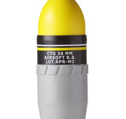 An airsoft/paintball projectile for a grenade launcher is a pyrotechnic, commercially manufactured device that taking your training or game to a completely new level. The projectile is made from traumatic-safe, lightweight polyurethane foam. The unbelievable accuracy of this grenade, caused by its spinning movement during the flight. This spinning stabilizes the grenade until initiation (4.5 seconds after launching out of launching device).
