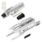 The CNC 7075 Aluminum Blowback Unit is machined with precise CNC tolerances from 7075 Aluminum for improvements in stability, durability and overall performance. It is designed with a plastic inside to reduce wear on the nozzle. And there is a plastic insert with the appropriate angle so the hammer never gets caught in the BBU. Optimized weight only 14.38 grams. Adjustable BBU for turning standard BBU to early air cut off BBU.