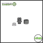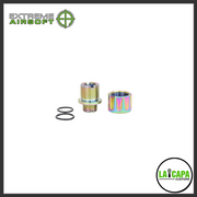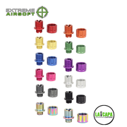 The official LA Capa Customs thread adapters! The cap screws in two different ways for different looks. The adapters come in 12 different colors and are very light weight. This is perfect for hiding longer inner barrels as well as for tracer units.
