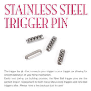 Easily lost during the building process, the Nine Ball trigger pins are the perfect drop-in replacement for both Tokyo Marui stock triggers and Nine Ball triggers alike. Always have a few backups just in case!