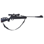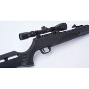 Maximize your small game airgun hunting and target shooting with the Ruger® Targis Hunter Max. This hard hitting air rifle is designed with the outdoorsman in mind. This pellet rifle was made for getting out in the woods. The foundation of Targis Hunter Max is its ergonomic all-weather stock. Both the stock wrist and the forend have checkered rubber grip inserts for a sure grip in the hot or cold, or wet or dry. The stock is also fitted with a comfortable rubber buttpad and sling studs matched with an included adjustable nylon sling. Topping off the Targis Hunter Max’s stock is the airgun industry’s only integral scope rail. The Umarex Nucleus Rail provides a sure and steady mounting platform for the included 3-9X32 scope with an adjustable objective. Maximizing stealth is also built into the Targis Hunter Max. The SilencAir non-removable suppressor provides noise reduction for years of quiet shooting performance.