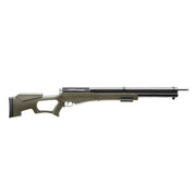Umarex's AirSaber is flinging arrows with no strings attached! The Umarex AirSaber uses high-pressure air to propel a 376-grain arrow at velocities up to 450 feet per second with a fully charged air tank. Arrows shot from a full tank reach energy levels over 169 ft-lbs. This is more than enough for hunting big game and is, in fact, legal in 10 states for deer and most states allow for predator/feral species hunting with devices of this kind. The AirSaber uses a special carbon-fiber arrow that weighs 276 grains by itself. These arrows accept standard and mechanical broadheads and are easily changed out. Shooters can expect to get 25 shot at big game lethal energy on one fill or 30 shots of predator lethal energy. The tank pressurizes at 3,625 PSI and the AirSaber comes with a Foster fitting fill probe for easy fills with an HPA compressor, hand-pump, or SCBA tank. The AirSaber is accurate out to 70 yards and has a top Picatinny rail for mounting an optic of your choice. Unlike other arrow shooting rifles the AirSaber has a sleek form and a price that's hard to beat.