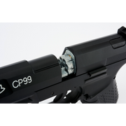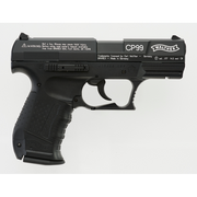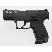 LOOK FOR the Unique Lines and Distinctive Shape of the P99 replica as a TRADEMARK of Walther. Modeled after the original Walther P99 and once used by the most famous "double agent" in the world, this 8-shot semi-automatic repeater offers both accuracy and durability. The Walther CP99 features a rifled barrel, decocking safety, drop out CO2 magazine, and comes with two 8-shot rotary magazines for quick airgun action. Comes in a foam-lined plastic gun case. Bicolor version comes with a metal nickel slide.