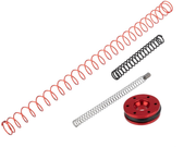 Kit includes: 150% recoil and hammer spring in red anodize, reinforced light weight piston head, Power Cylinder Bulb, Polycarbonate Enhanced Muzzle, knocker, floating valve.