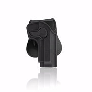 The Cytac OWB Holster is constructed of high-tech polymer, and perfectly fit for each specific airsoft pistol. This fitted holster has a quick-release/quick-locking button that allows for a quick draw and automatic locking when your gun is reholstered. They are designed for easy access and drawing your pistol without impediment, and can rotate 360-degrees to adjust the holster cant for ultimate versatility. These OWB pistol holsters are very comfortable with their soft silicone paddle to securely fit holster to belt. They provide a fast and easy draw while still proving great retention. This gun holster is worn outside the waistband.