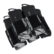The holsters are completely modular and able to be positioned vertically, horizontally or diagonally. Each holster can be quickly attached to your chest rig, harness, backpack or any item with velcro areas and/ or molle webbing.. The back side of the holster features a velcro molle strap and full hook velcro panel The front side has loop velcro for patches or secondary attachments.
