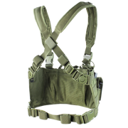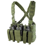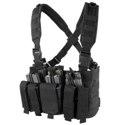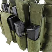 The Condor Recon Chest Rig is designed with built-in stacker/kangaroo style mag pouches to allow the user rapid, seamless access to mags for faster reloads with up to six AR/M4 mags and six pistol mags. The adjustable and removable flaps on the pistol pouches also allow the user to keep a knife, multi-tool, or other small accessories close at hand while training or on duty. This Condor Recon chest rig setup also features an interior mesh pocket for safely storing items close to the body. Swivi-Lockster quick-release buckles allow you to remove the chest rig quickly and easily when necessary. With grommets for drainage and padded cross-back shoulder straps, this Condor chest rig also helps you stay comfortable and dry.